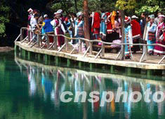 四川省馳名中外的九寨溝風景旅游地,今年春天在抗擊SARS病毒的大戰中雖然游客銳減,但成功拒病毒于千里之外。如今八月之夏,九寨溝的青山綠水邊又成為千上萬中外游客的最佳選擇。中新社記者:賈國榮
