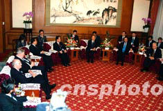各方代表團進入六號樓后稍作休息,于七點二十五分左右前往會見廳。在那里,笑容可掬的中國外交部部長李肇星以及中方代表團團長、副外長王毅,已經(jīng)站在門內(nèi)迎候他們的到來。
