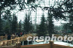馳名中外的四川省九寨溝旅游勝地旁的甘海子,今夏八月正在森林中興建九寨天堂國際會議度假中心。圖為施工中的中心大堂保留著原生態,明年在此舉行世界環境與發展論壇時,將好似林中水晶宮。中新社記者:賈國榮