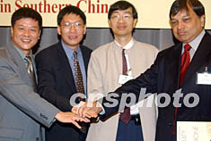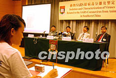 香港大學(xué)醫(yī)學(xué)院,九月五日在香港舉行“ 動(dòng)物SARS病樣毒分離及鑒定”研究報(bào)告會(huì),報(bào)告指出“活畜零售可能是傳播SARS病毒的主要途徑”。圖為香港大學(xué)醫(yī)學(xué)院微生物學(xué)系四位知名教授在會(huì)上。中新社記者:錢(qián)興強(qiáng)