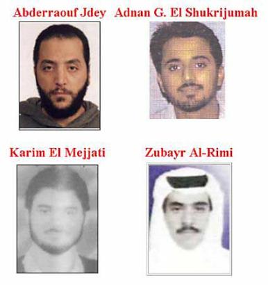 據報道,這4名男子中兩人來自沙特阿拉伯,另外兩人分別來自摩洛哥和突尼斯。其中28歲的沙特男子舒克里朱馬是“基地”組織的一個策劃者,其地位與“9·11”事件主要策劃者阿塔相似。