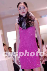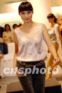 在香港舉行的Episode/Jessica 秋冬時裝展2003上,名模楊崢展演為女士特別設計的新款秋冬時裝。中新社記者:洪少葵