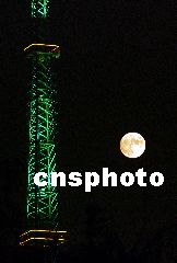 中秋前夜,河南鄭州的空氣質(zhì)量良好,天氣晴朗,一輪圓月掛在空中,與鄭州電視臺(tái)發(fā)射塔相映生輝。 馬健 攝