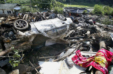 “鳴蟬”臺風(fēng)的風(fēng)速達(dá)到了創(chuàng)紀(jì)錄的216公里/小時(shí),臺風(fēng)挾帶的暴雨造成韓國許多地區(qū)發(fā)生了滑坡和洪水。韓國救援部門的官員稱,受災(zāi)地區(qū)被臺風(fēng)切斷的通訊聯(lián)系正陸續(xù)恢復(fù),他們擔(dān)心臺風(fēng)造成的死亡者的統(tǒng)計(jì)數(shù)字還將增多。
