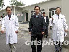 中共北京市委副書記龍新民(中),9月18日到北京協和醫院等醫療機構檢查落實北京市嚴防SARS緊急預案落實情況。中新社記者:任晨鳴