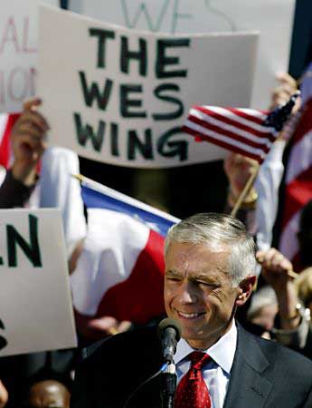 中新網9月19日電 繼宣布與另外九名民主黨議員一起參加明年美國總統大選之后,克拉克(GEN WESLEY CLARK)昨日在弗羅里達州對數百名支持者發表首次競選演說。