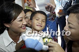 參加第五十三屆世界小姐中國總決賽的選手九月中旬來到三亞市兒童福利院,看望生活在那里的孤兒與殘疾兒童,并向他們贈送玩具。中新社記者:毛建軍