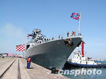 9月20日,俄羅斯海軍“潘捷列耶夫海軍上將”號大型反潛艦,在太平洋艦隊副司令科涅夫·亞歷山大·瓦西里耶維奇中將率領(lǐng)下,抵達(dá)青島港。鄒山 攝