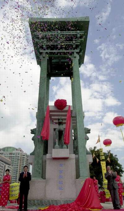 中新網9月20日電 “北京建都紀念闕”今天在宣武區濱河公園內金中都大安殿遺址上正式揭幕,從而拉開了北京紀念建都850周年系列活動的大幕。