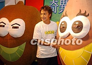 香港歌手方力申,九月二十三日以ZESPRI宣傳大使身份在慶祝會上與“奇異果卡通形象”在一起。中新社記者:錢興強