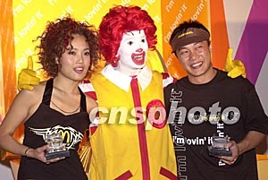歌星陳奕迅、容祖兒9月23日在香港出席麥當勞全球性的“i’m Iovin’ it”品牌推廣活動記者會,陳奕迅、容祖兒將為香港區麥當勞為配合全球性電視廣告推出的“i’m Iovin’ it”廣告片主唱粵語版主題歌。作者:鄧慶樂