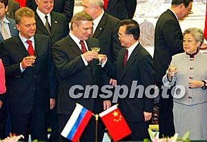 中新社北京九月二十四日電(記者齊彬)中國總理溫家寶今天在人民大會堂與俄羅斯總理卡西亞諾夫舉行會談。會談自始至終充滿了友好氣氛,兩國領導人在雙邊和國際問題上取得了廣泛共識。