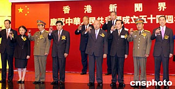 中新社香港九月二十六日電(記者曉萍) 香港新聞界今日假北角新都會大酒樓舉行盛大酒會,熱烈慶祝中華人民共和國成立五十四周年。