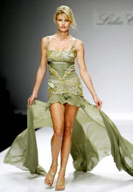 9月27日,在意大利米蘭2004春夏時裝周上,模特現場展示了意大利設計師Lidia Cardinale的新作。米蘭時裝周從9月27日開始,10月6日結束。