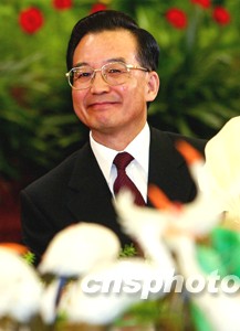 溫家寶總理在招待會上講話。他說,今年是中國人民在中共十六大精神指引下闊步前進的一年,是經受嚴峻考驗并取得重大勝利的一年。
