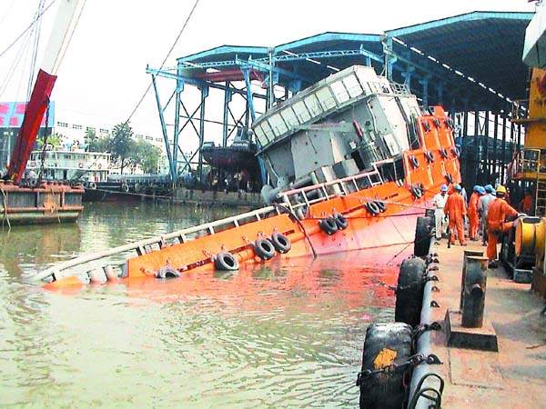 根據船舶資料顯示,該船空船重量達到1120噸,因為沉沒在珠江內河,大型打撈船舶設備無法進入,給打撈工作造成很大困難。根據可用的船舶設備情況,打撈局采用穩定難船、封艙抽水、使難船自浮的整體打撈方案。首先用300噸浮吊及潛水作業母船穩定住沉船浮態,對其進行必要的加固,防止其繼續下滑和左傾加大;慢慢移開左舷的浮船塢,然后水下封堵有關的孔蓋、海底閥及主甲板上的工藝開口,然后用潛水泵抽出船內積水,使難船自浮,調整浮態,現場交船。(幸琦昕許力夫張健文)