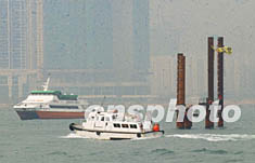 香港高等法院判決保護海港協會向高院申請暫緩中環第三期填海工程訴訟敗訴后,政府表示將會恢復有限度填海,但只會挖淤泥,不會進行打樁的工程。圖為渡輪在填海工程樁柱旁經過。作者:洪少葵