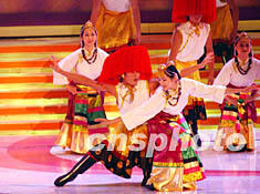 在香港慶祝中華人民共和國54周年國慶文藝晚會上,一臺融合中西音樂、舞蹈、歌唱、軍操及武術表演的綜藝節目,令觀眾目不暇給。圖為精彩紛呈的舞蹈《春回大地樂全城》。作者:洪少葵