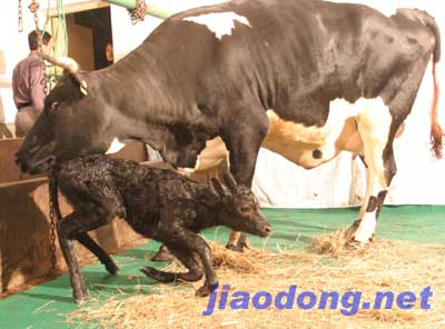 今天凌晨,記者和科研人員一起,焦急地等待“蓓蓓”的降生。3時18分,在科研人員的努力下,克隆!拜磔怼苯K于來到了這個世界,母親黑白花奶!袄婊ā弊o犢情深,忽然發起牛威,不許眾人靠近,并用舌頭舔干“蓓蓓”的濕濕的黑色毛皮!拜磔怼遍_始睜開眼睛,怯生生地看著四周關心它安危的人們。凌晨4點左右,在母親的幫助和周圍人們的鼓勵下,“蓓蓓”終于顫悠悠的站了起來,并在母親的幫助下開始行走。科研人員費了好大的勁才遏制住了母親的牛勁,開始對剛降生的“蓓蓓”進行科學測量。經測量,“蓓蓓”體長66厘米,身高78厘米,胸圍81厘米,管圍11厘米,心律188次/分,體溫39攝氏度,體重33公斤,各項生理指標正常。