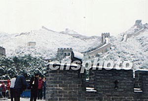 十二日早晨,八達嶺長城迎來今冬首場降雪,也引來不少賞雪的游人。作者:耿超