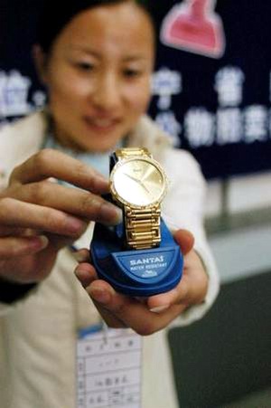 據(jù)遼寧省公物拍賣行有限公司債權(quán)部經(jīng)理董茂貴介紹,此次展出的拍品共有9大類、140余件。在展廳的對面,墻上懸掛著的16幅名家書畫特別惹眼,其中“瑞氣繞庭”、“成名何須頑石篆,路上行人口是碑”等幾幅字據(jù)說曾是慕綏新比較欣賞的,此時擺在展室里,卻成了對貪官絕好的諷刺。里間的櫥柜里擺放著手表、工藝品、書畫、相機等各種“名牌”貴重物品,很多都是沒有用過的。