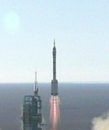 中新社酒泉十月十五日九時(shí)電 本社記者孫自法在酒泉衛(wèi)星發(fā)射中心載人航天發(fā)射場現(xiàn)場報(bào)道,北京時(shí)間十五日上午九時(shí)整,中國第一艘載人飛船“神舟”五號(hào)從此間載人航天發(fā)射場發(fā)射升空。