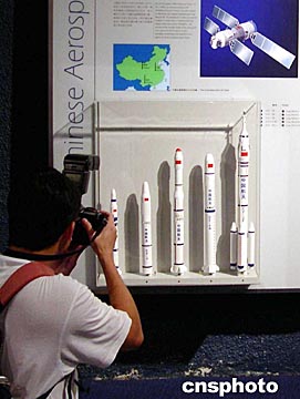 萬(wàn)眾注目的“神舟”五號(hào)飛船10月15日發(fā)射成功,引起香港民眾對(duì)太空知識(shí)的濃厚興趣,太空館展出了長(zhǎng)征火箭模型,向觀眾介紹中國(guó)航天發(fā)展的輝煌歷程。作者:洪少葵