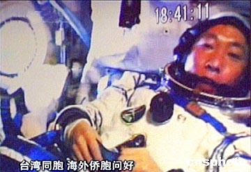 中新網10月15日電 北京時間15日18時40分許,當“神舟”五號飛船運行到第七圈,在距地面343公里的太空時,中國首位航天員楊利偉從飛船上發出問候。