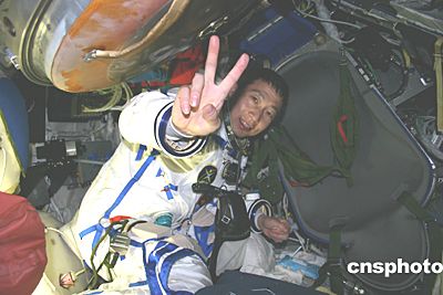 六時(shí)四十五分,身著白色宇航服的航天員從返回艙中神采奕奕探頭出來(lái),他把面罩向上一拉,微笑著向迎接他回家的人們揮手致意。一時(shí)間、草原上掌聲雷動(dòng),許多人激動(dòng)地流下了熱淚。