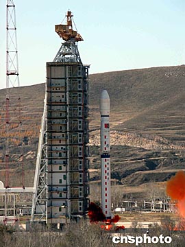 中巴地求資源衛星0二星和“創新一號”小衛星二十一日在太原衛星發射中心由“長征四號乙”運載火箭一箭雙星成功發射升空。中新社記者 孫自法 攝