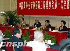 中國海外交流協會第三屆第一次全體理事會議二十一日在北京人民大會堂舉行,全國政協副主席羅豪才、中國海外交流協會常務副會長陳玉杰等出席會議。中新社記者:滿會喬