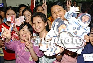 據香港媒體消息,機場有逾800名學生、教師及市民迎接楊利偉。