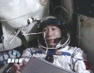 據悉,楊利偉在太空坐椅的上面固定了一個攝像機位,記錄自己在太空艙中的生活狀態。通過這個機位,可以看見楊利偉在太空中的正面表情和動作。