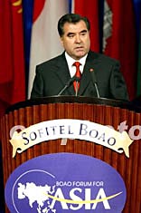 塔吉克斯坦共和國總統拉赫莫諾夫十一月三日在博鰲亞洲論壇2003年會上發表演講。中新社記者:毛建軍