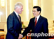 圖:胡錦濤會(huì)見美國前總統(tǒng)克林頓