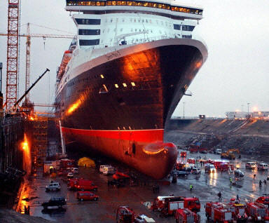 圖:世界最大客輪"瑪麗女王二世"舷梯坍塌