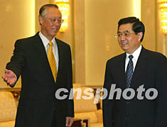 中國國家主席胡錦濤十九日在北京會見新加坡總理吳作棟。中新社記者:鄭萍萍