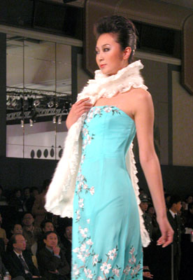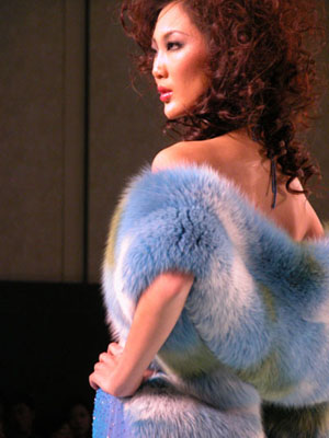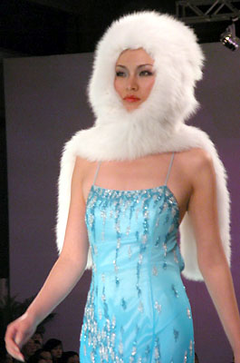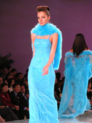 中國國際時裝周NE·TIGER 2003/2004高級皮草晚裝,個性奢華寶藍系列。