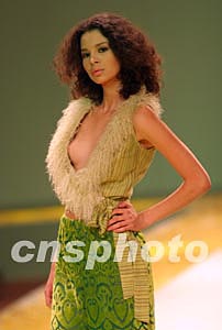 十一月二十三日晚,杉杉·玫瑰黛薇2004年春夏時裝發(fā)布會在北京中國大飯店舉行,設(shè)計師通過步料的選擇兼收并蓄多個地區(qū)和民族的特點,使時裝散發(fā)出濃厚的異域情調(diào)和時尚氣息。中新社記者:盛佳鵬
