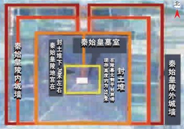 物探發現地宮中的墓室和宮墻均為石質結構,地宮在封土堆以下30米左右,地宮中的墓室邊界東西長約170米,南北寬約145米。這是一種迄今為止首次發現的墓葬形式,在物探考古過程中,專家還發現大范圍、強異常的汞含量,初步證實了《史記》中記載的“以水銀為百川、江河、大海”的真實性。