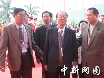 臺灣知名人士林洋港先生(中),臺商、天福集團(tuán)總裁李瑞河先生(左)等出席第五屆海峽兩岸(福建漳州)花卉博覽會開幕儀式。蔡文原攝