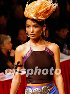 模特小姐展示的新潮頭飾與華夏傳統(tǒng)的貼身內衣,是中國的大學時裝設計專業(yè)新秀的創(chuàng)新作品,十一月在北京參加新人獎評選中,令中外時裝界的評委們耳目一新。中新社記者:賈國榮