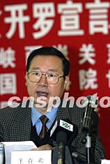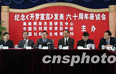 海峽兩岸關(guān)系研究中心、中國社科院世界歷史所、中國社科院臺灣研究所共同主辦的紀念《開羅宣言》發(fā)表六十周年座談會十二月一日在北京舉行。近二十位專家學(xué)者與會,重申臺灣是中國領(lǐng)土,主權(quán)歸屬不容更改。圖為國臺辦副主任、海研中心顧問王在希(左三)在會上發(fā)言。作者:張勤