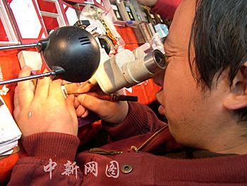 金陵民間微雕工藝能在一粒米上雕刻六首唐詩,立等可取。那劍卿 攝