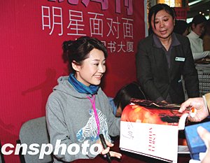 十二月六日下午三時(shí),基本淡出娛樂(lè)圈的“美女明星”許晴在北京圖書大廈參加《E·T衛(wèi)視周刊》雜志社舉辦的明星面對(duì)面現(xiàn)場(chǎng)簽名活動(dòng)。作者:徐曦弋