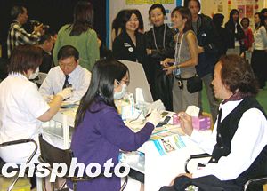 “媽咪寶寶暨家庭健康博覽2003”十二月十二日在香港會展中心開幕,主辦機構提供的十多項免費健康測試及現場健康咨詢服務受到與會者青睞,并成為博覽會特色之一。作者:潘索菲