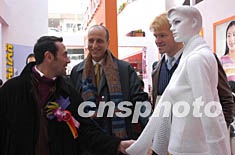 第二屆中國(大朗)國際毛織產品交易會十三日在廣東東莞大朗鎮新落成的中國大朗毛織貿易中心開幕,來自日、德、意、港澳臺及中國內地的三百多家企業到場參展交易。圖為法國著名時裝設計師前來交易會現場參觀。作者:羅仰明