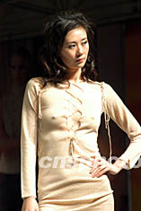 第二屆中國(大朗)國際毛織產品交易會十三日在廣東東莞大朗鎮新落成的中國大朗毛織貿易中心開幕,首場品牌發布會上,模特兒穿著薏莎品牌向人們展示該品牌的最新服裝。作者:羅仰明