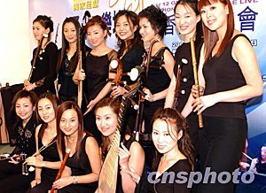 日前在日本演出獲得成功的女子十二樂坊,十二月十五日在香港舉行新聞發布會,該樂坊將在香港進行專場演出。圖為十二位樂坊美女各持樂器亮相。中新社記者:錢興強