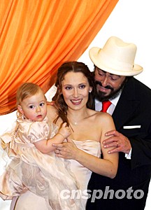 12月13日,世界三大男高音之一的“歌王”帕瓦羅蒂在故鄉(xiāng)摩德納與相戀多年的女友尼可麗塔·曼陀瓦尼喜結(jié)良緣。圖為帕瓦羅蒂與妻子尼可麗塔、女兒愛麗斯合影。Ic/cnsphoto 攝